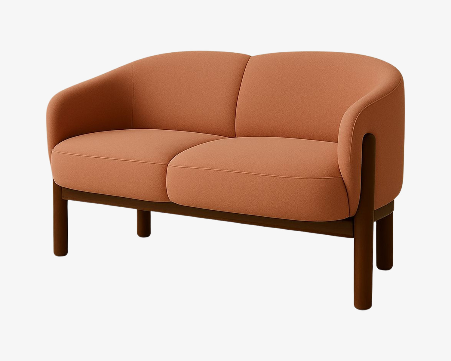 As proporções são generosas, pensadas para uma experiência de uso prolongada, enquanto a base em madeira ancora a peça com naturalidade.
